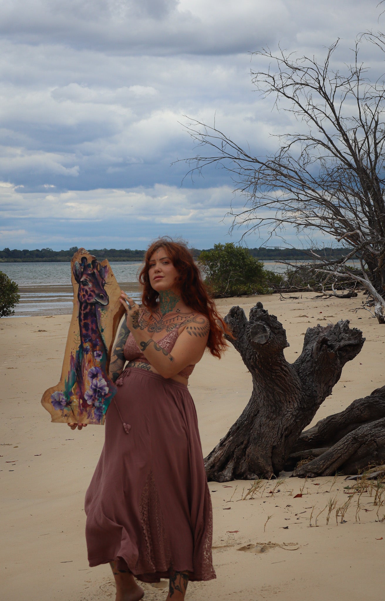 Painted with love and intention in ceremony. This piece comes READY to hang in Your own sacred space with hook and eye on the back, varnished to last a lifetime, painted using only high quality watercolour and acrylic paints. At a size of 74 x 32 cm.