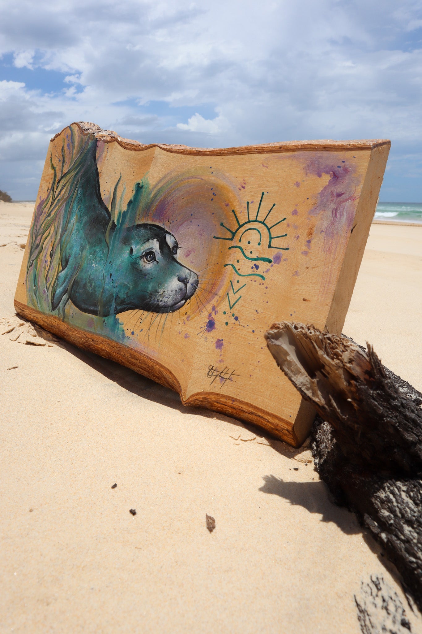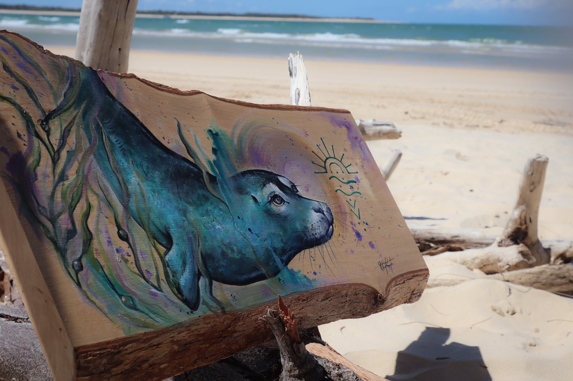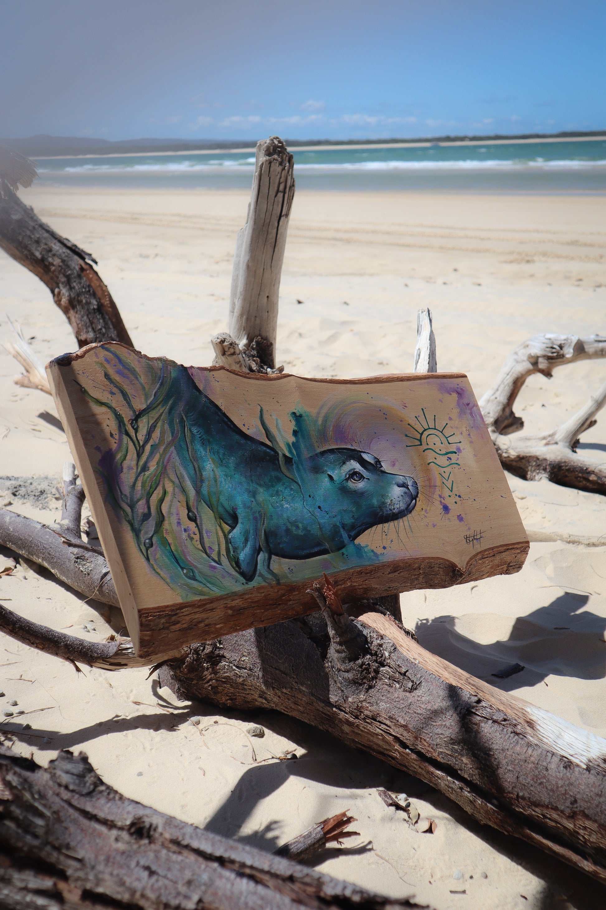 Channelled Seal Guide on locally cut Jacaranda Timber 49 x 31 cm.