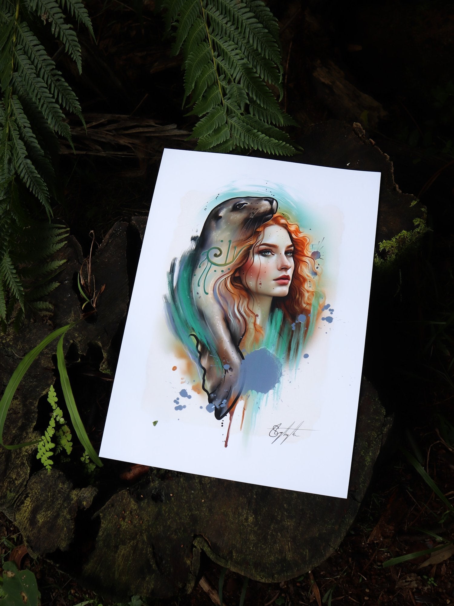 A channelled vision straight from Source, to Stacey’s mind, translated into artistic activations. An A3 print of “the Selkie”.
