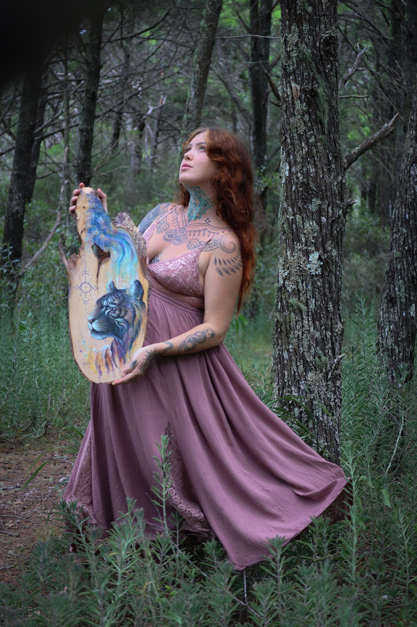 Painted with love and intention in ceremony. This piece comes READY to hang in Your own sacred space with hook and eye on the back, varnished to last a lifetime, painted using only high quality watercolour and acrylic paints. At a size of 62 x 30 cm.
